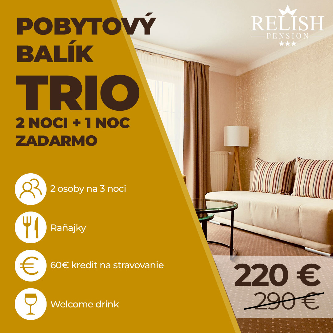 - Dve noci ubytovania pre 2 osoby v útulných a elegantných izbách penziónu Relish.